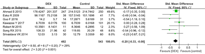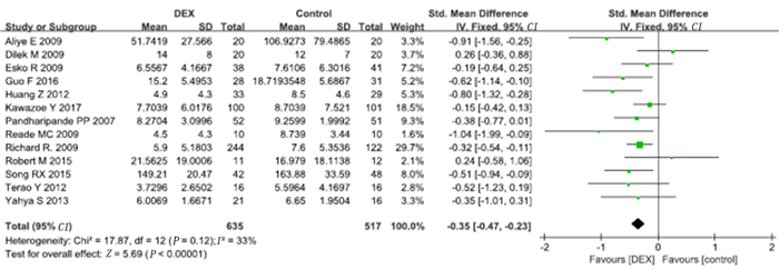 图 5 右美托咪定对ICU住院时间影响的Meta分析 |
