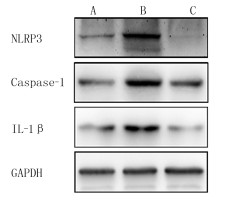A:对照组;B:模型组;C:褐藻糖胶组。 图 2 Western Blot检测各组颈动脉粥样硬化斑块中NLRP3炎性小体通路相关蛋白表达 |
